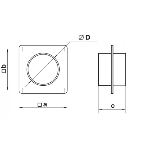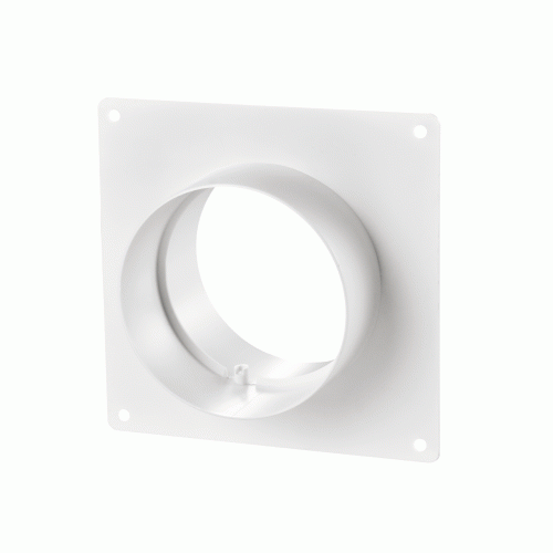 Conector cu flansa pentru tubulatura rotunda, confecţionat din PVC alb. Conectarea conductelor de aer cu același diametru. Echipat cu o placă de perete pentru decorarea deschiderilor de montare.
